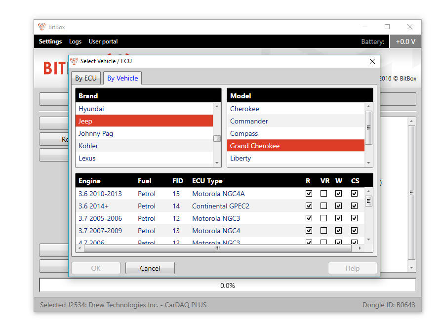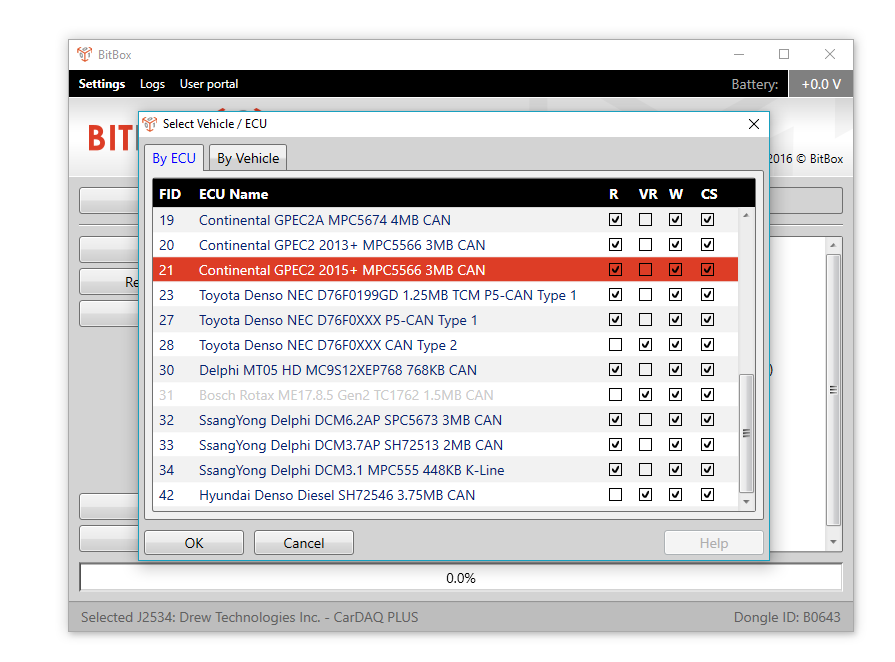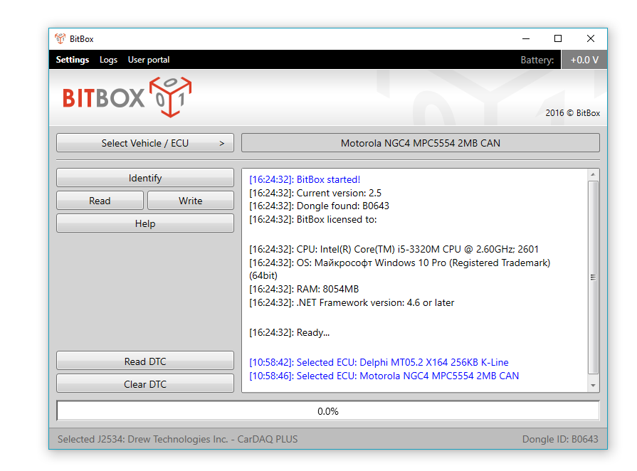 Attention! The module is in test stage. New ECU types will be added ASAP.