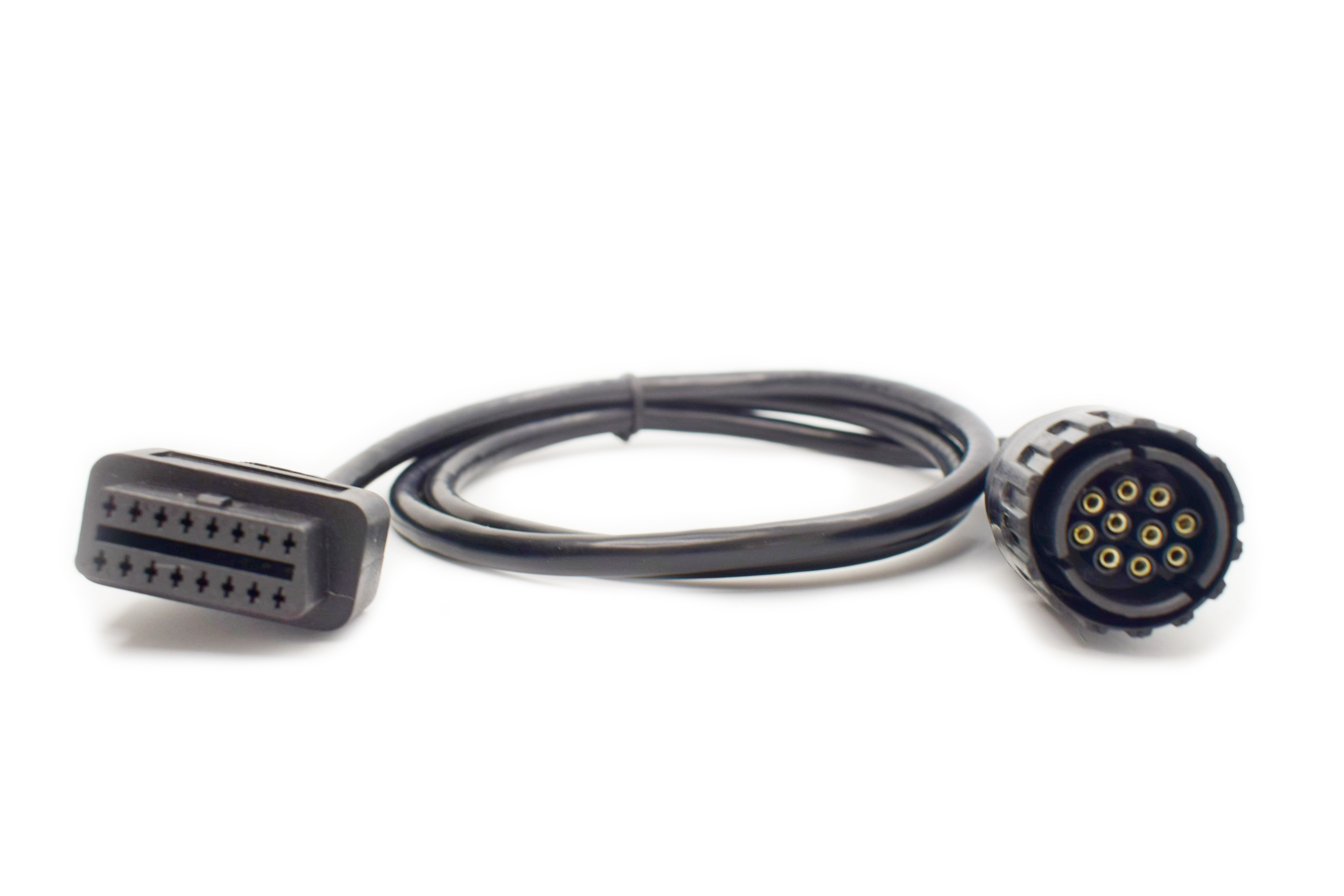 BMW 10pin-to-OBD2 adapter is designed to connect a J2534 adapter or any device with a built-in OBD2 Male to the diagnostic connector of BMW Motorrad vehicles.