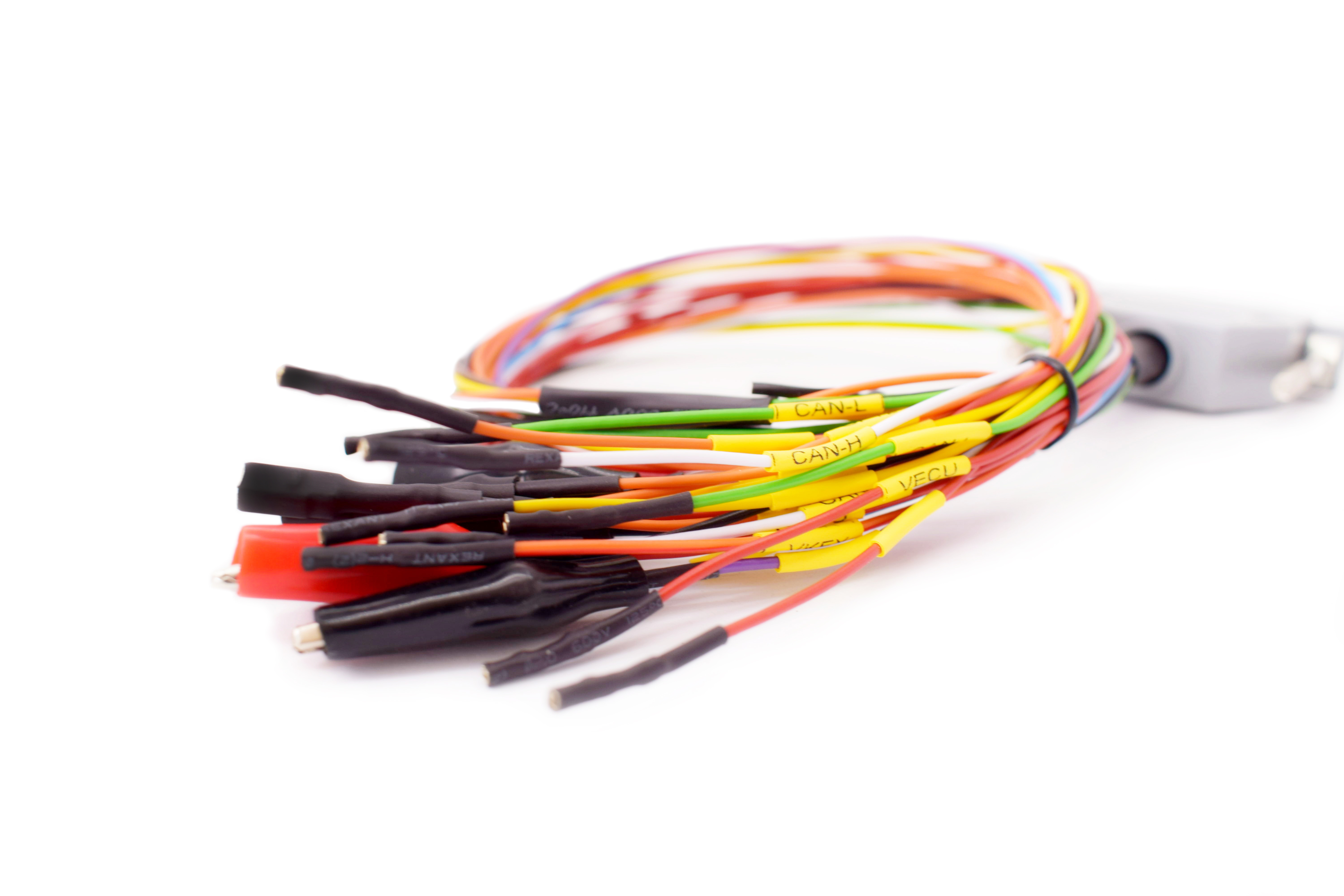 On the front panel of the device there is a DB-25 plug designed to connect to the ECU using the universal cable included in the delivery package. All cable wires are labeled for proper connection. The cable is equipped with additional contact pairs on the «VECU» and «VKEY» circuits, which allows to supply up to eight supply voltages (four small contacts and four large ones).