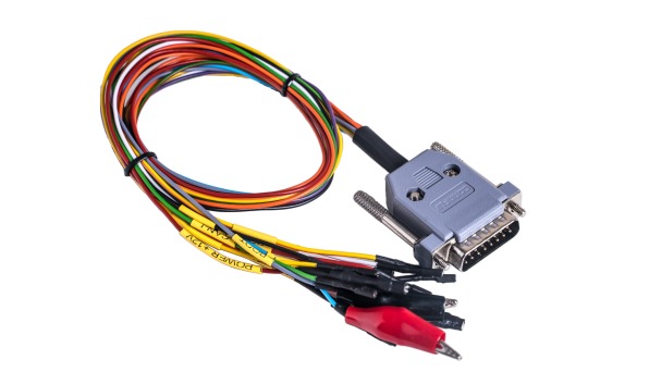 On the front panel of the device there is a DB-15 plug designed to connect to the ECU using a universal cable. All cable wires have appropriate markings to connect them correctly.