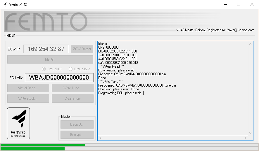 FEMTO OBD Flasher is a software solution for Bosch MDG1 ECUs family chip-tuning. With this tool you can easily make real and virtual Read of MDG1 ECU directly from the OBD socket. No need to remove or disassemble the ECU. All operations are easy and safe.