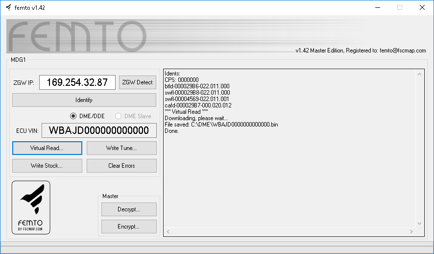 FEMTO OBD Flasher is a software solution for Bosch MDG1 ECUs family chip-tuning. With this tool you can easily make real and virtual Read of MDG1 ECU directly from the OBD socket. No need to remove or disassemble the ECU. All operations are easy and safe.