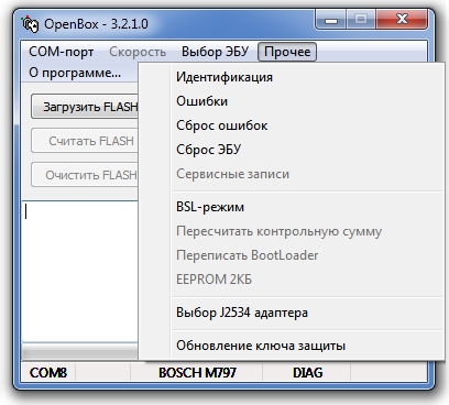 For ZAZ and Chinese vehicles with BOSCH М7.8. Writing FLASH via OBDII. FLASH/EEPROM reading and writing of the controller is BSL.