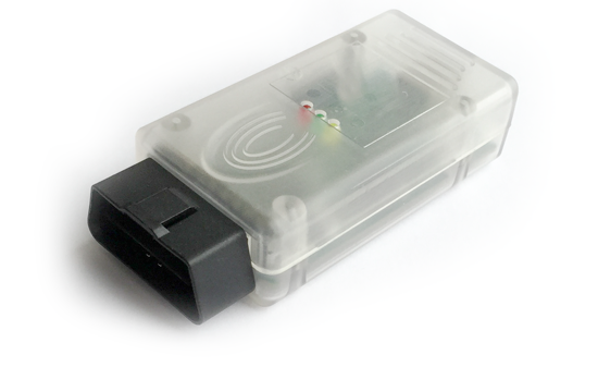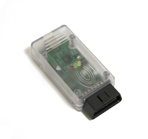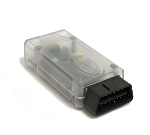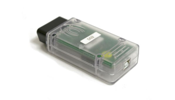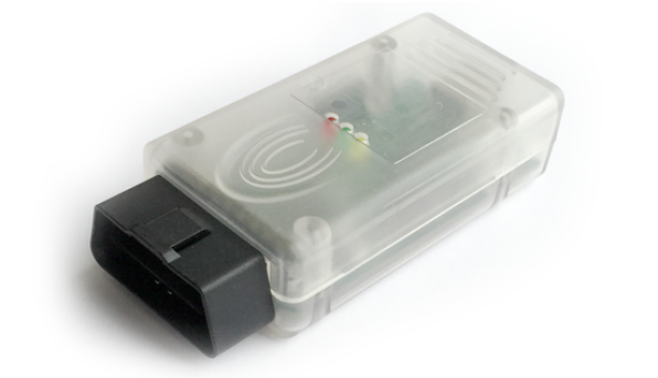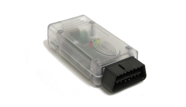 Built-in multiplexer Galvanic separation and short-circuit protection Adapter microcode USB updates The adapter is built in the OBD-II connector case.