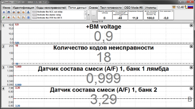 Besides the standard modes of reading and code clearing, Data Stream the ScanDoc has a rather convenient mode of ‘alternative graphics’. This mode allows to view on the screen a diagnosed system in a simplified way, e.g. an engine and a set of vitally important sensors with their statuses (active/inactive, if there is an error, etc.), and other data on each sensor. You can switch to the graphic way of parameter display with one mouse click.