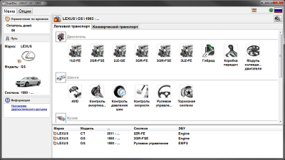The ScanDoc interface is very convenient, vehicle identification is simple, system and engine type selection is easy and graphic. Some vehicles, like Ford and Mazda, do not require engine type selection, the scanner will automatically read its ID and defines what systems are installed in this vehicle.