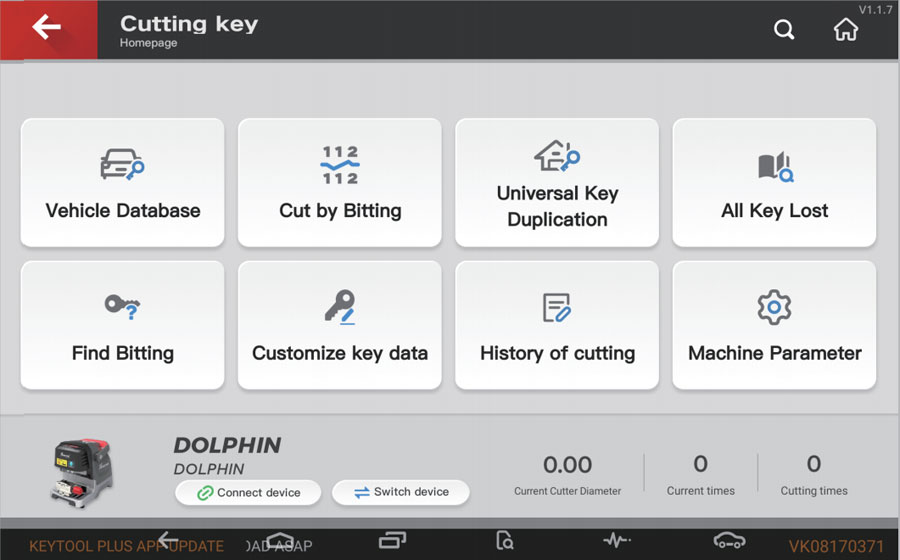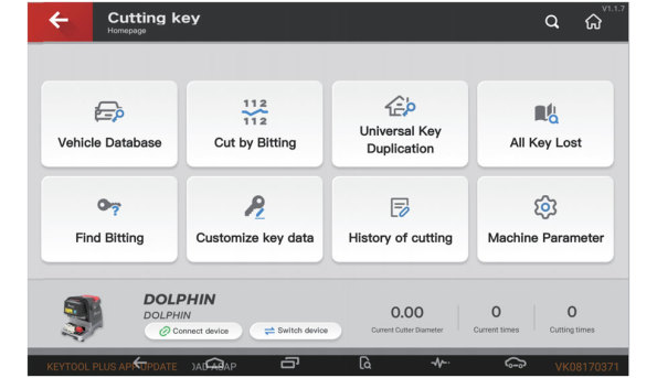 KEY TOOL PLUS is available to control the key cutting machines(CONDOR, DOLPHIN, and PANDA), to perfectly work as an operation screen. By using KEY TOOL PLUS, completely free your mobile phones.