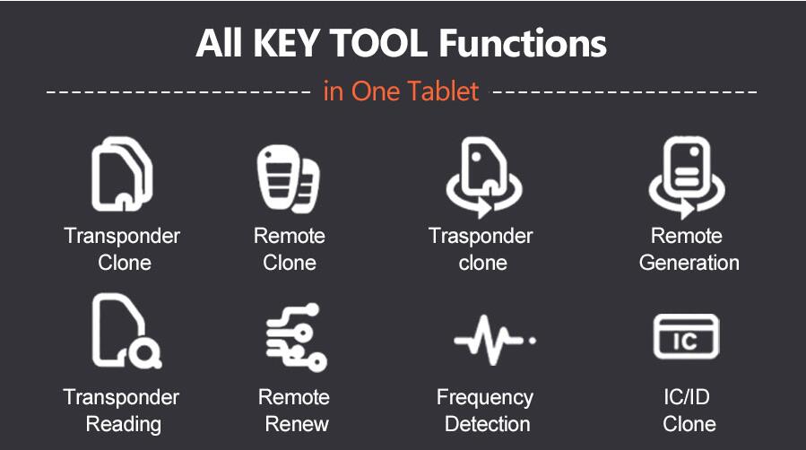 KEY TOOL PLUS supports maintenance light reset, electric parking brake, TPMS, battery matching, throttle program, injector programming, steering angle programming, bitting decode, gearbox programming, headlight programming, etc. More maintenance functions will be released soon.